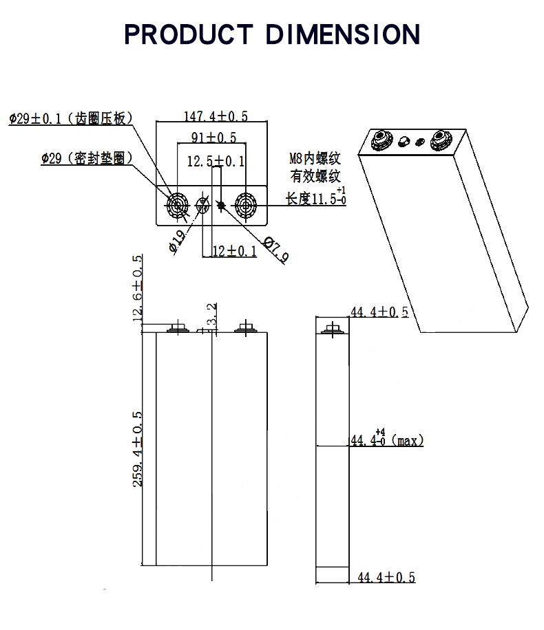 Afmeting (Pls. verwijs naar de tekening) | 44,4*147,4*272mm |