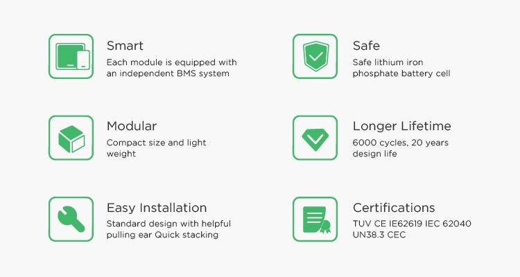 Certificering en veiligheid Stadard | TUV / CE / EN62619 / IEC62040 / UN38.3 / CEC geaccrediteerd | |